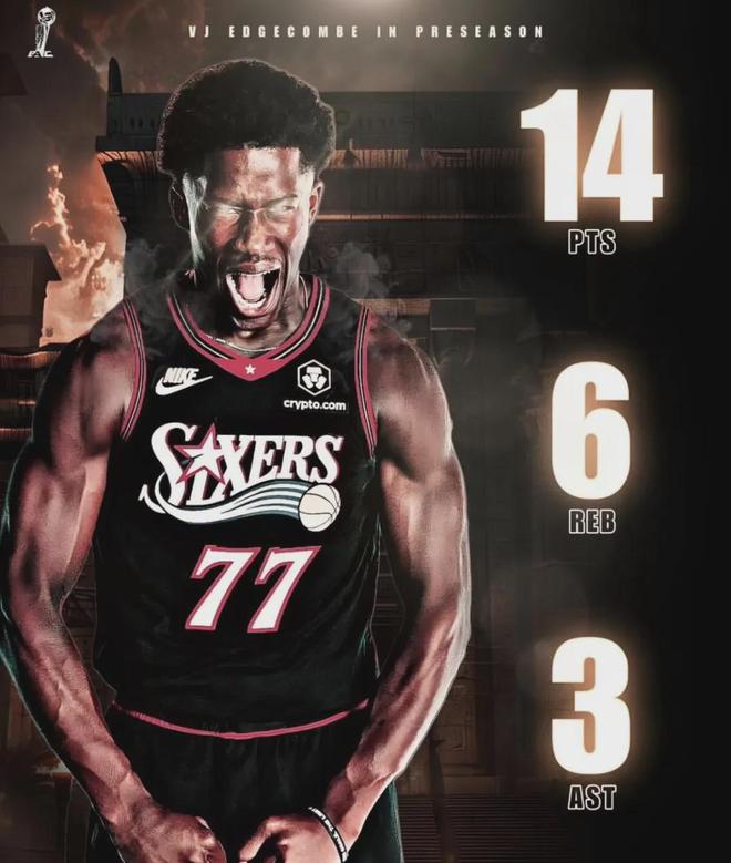 25届探花秀VJ-埃奇库姆(费城)在此役,迎来了自己NBA季前赛首秀,以首发分卫身份出战,亮相时间为全场最高的约31分钟,投篮13中4,其中6中1,罚球5中5贡献14分6板3助,正负值+1,身体天赋的确疯狂,可投篮还是有很大的提升空间。